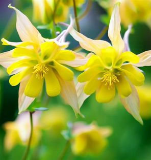 Dit is een van de beste geelbloeiende akeleien met zeer grote bloemen met lange sporen.