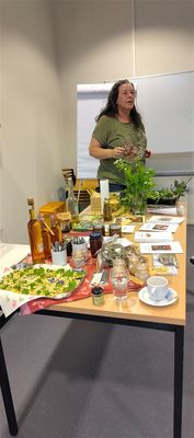 Er was geen PowerPoint maar levensecht materiaal aanwezig. Bianca Kruitz vertelde heel relaxt met veel kennis van zaken als meester herborist. We kregen een crackertje met daslook-boter versiert met bloemen en groen. Met daarbij waar het goed voor is in je gezondheid. Ook een theelepeltje paardenbloem likeur mocht iedereen proeven. Alle aanwezigen gingen met een oerprei naar huis. Dat is een vaste plant vergeten groente, die goed is tegen de prei-vlieg. Men was enthousiast over deze spreekster en wat we ervan opgestoken hebben.